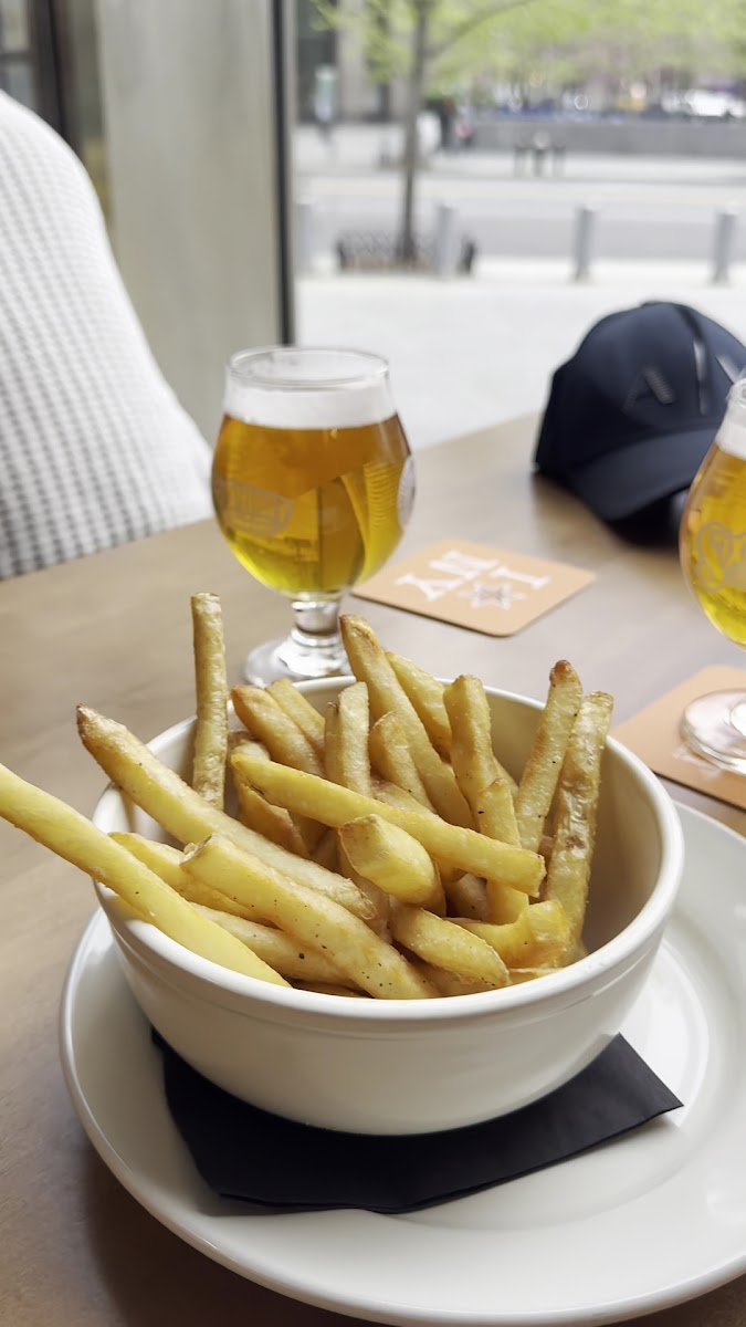 The beer is good. The food is excellent. Service is even better. The spot is located right across from the 911 Memorial. Food is made in house. My phone was dying and I needed a place to plug in and the wonderful staff offered me a portable charger while I eat dinner. Our server Kelley was excellent super kind and informative.